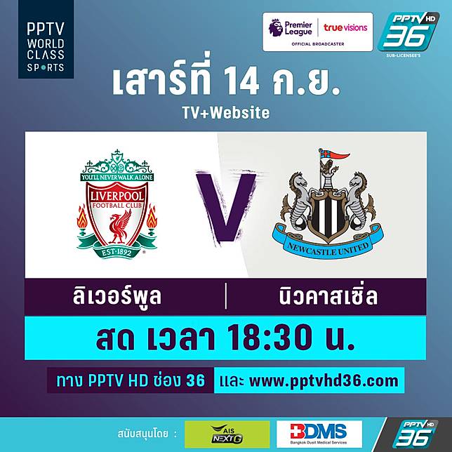 ดูบอลสด พรีเมียร์ลีก อังกฤษ และโปรแกรมถ่ายทอดสด พรีเมียร์ลีก อังกฤษ เสาร์ 14 ส.ค.